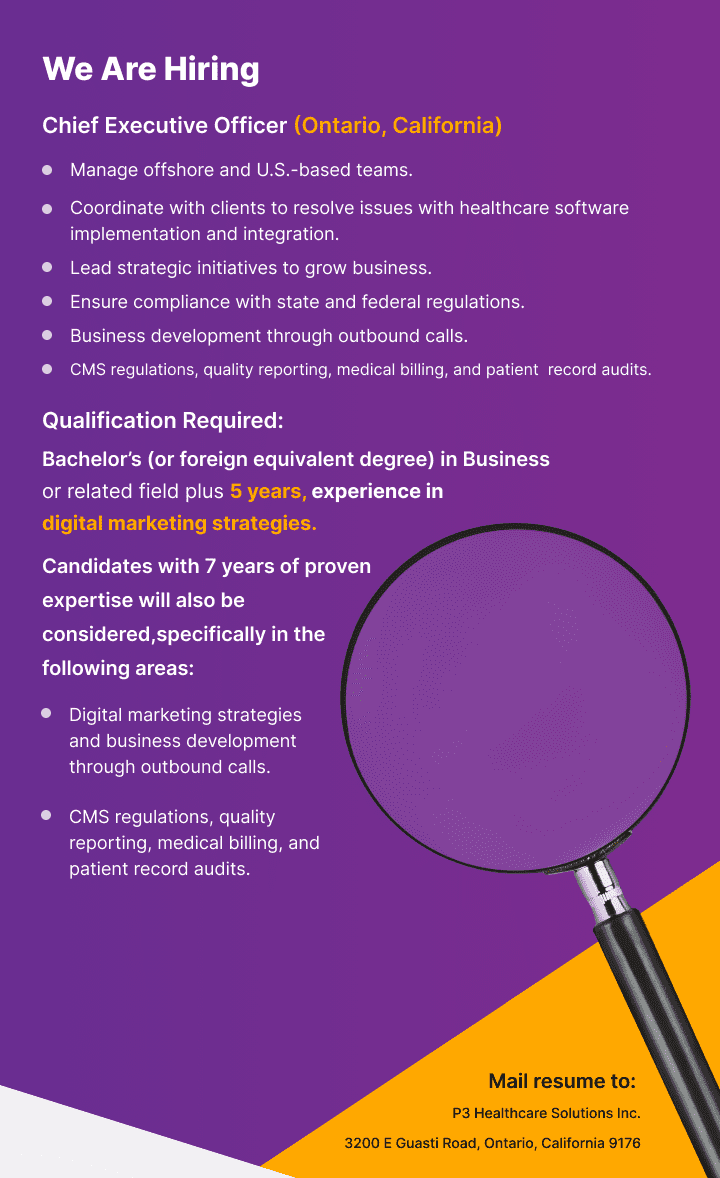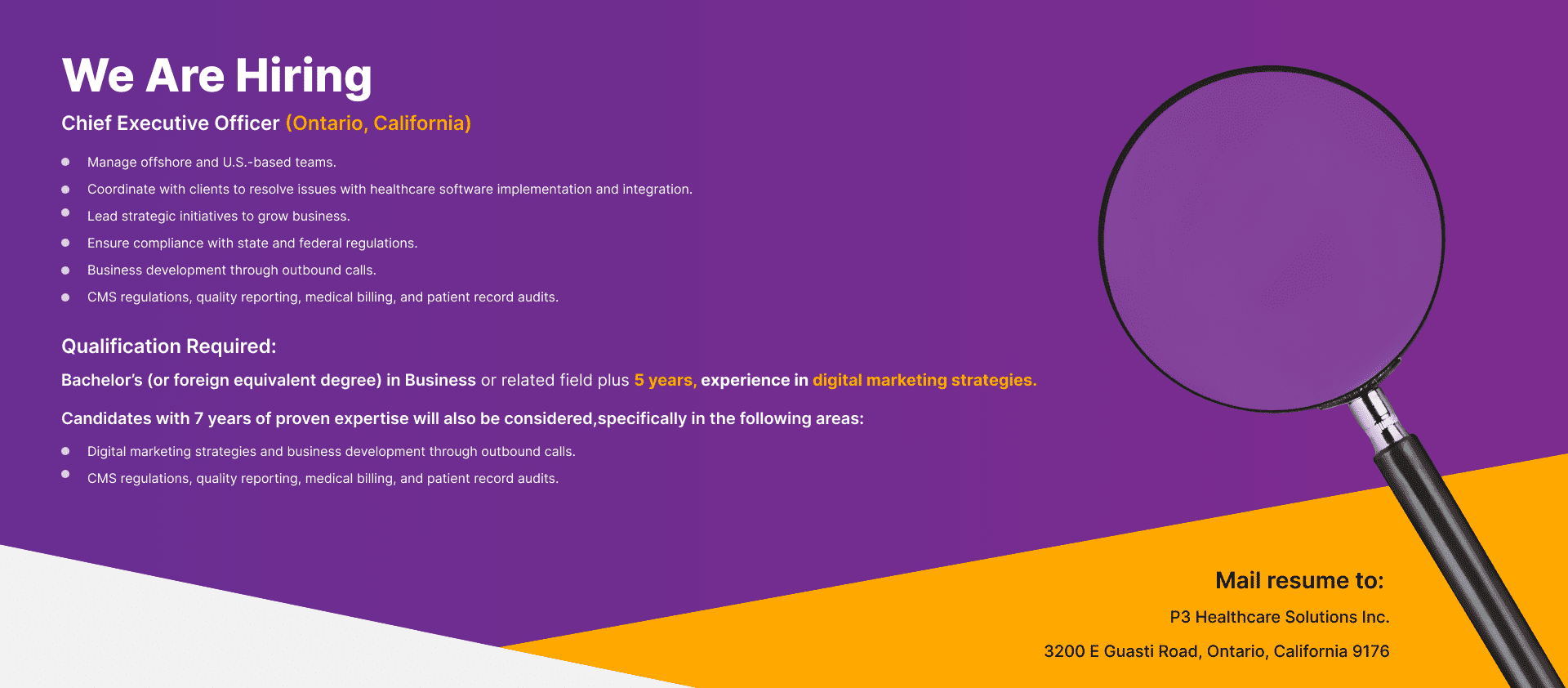 This organization P3 Healthcare Solutions is a wonderful organization to work with.The company is highly professional and very dedicated. The staff is very co operative and I will continue with them.