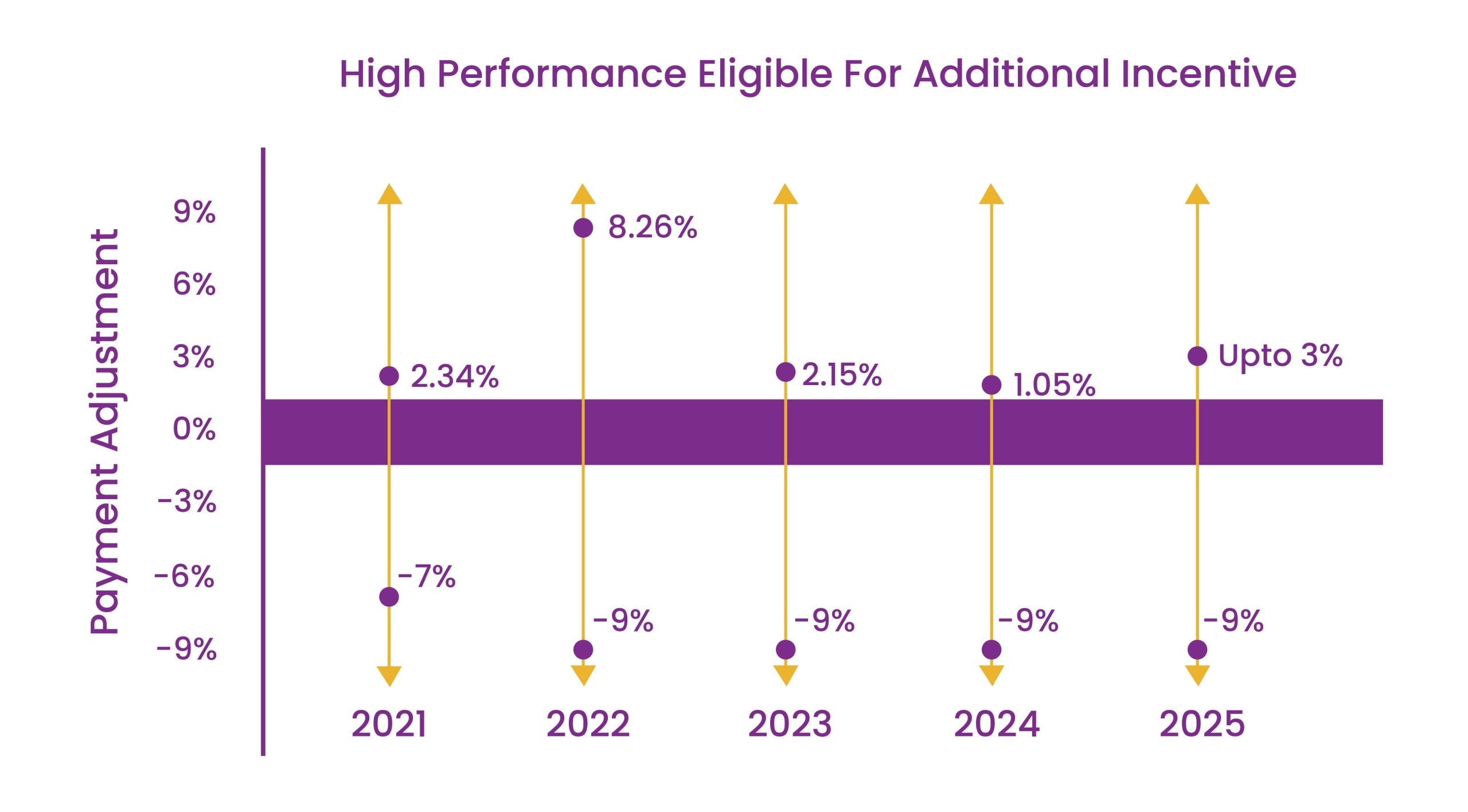 Negative MIPS payment adjustment ranges between -9% and 0%, on a linear sliding scale
